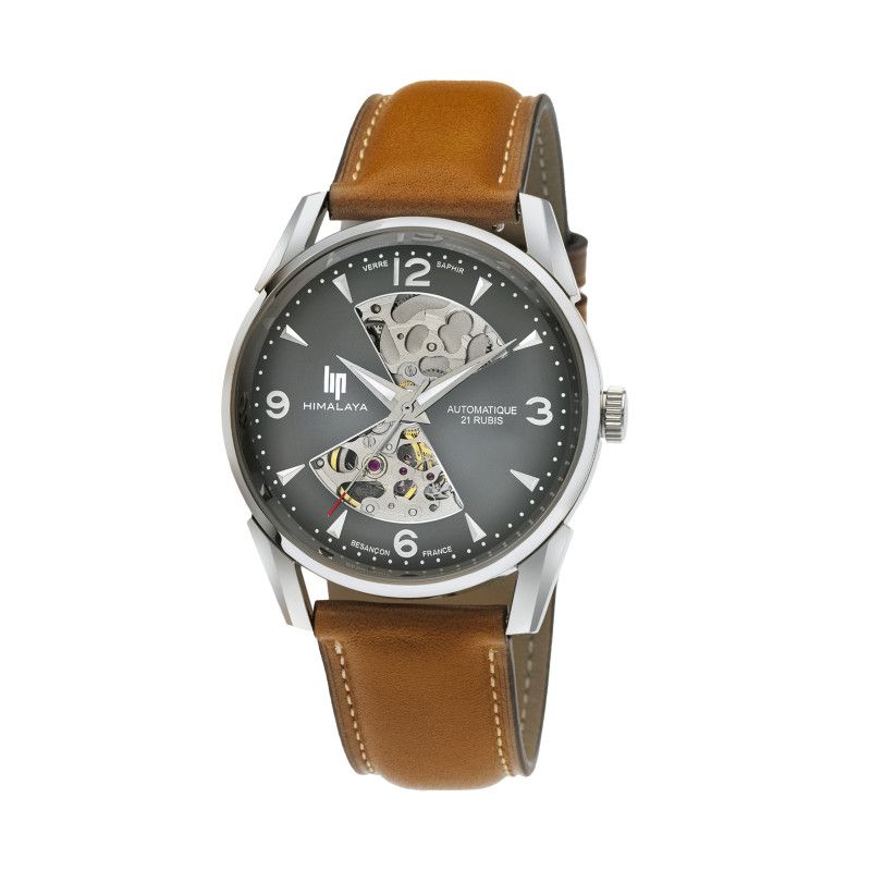 Boite acier 40 mm, verre saphir bombé antireflet , bracelet cuir marron