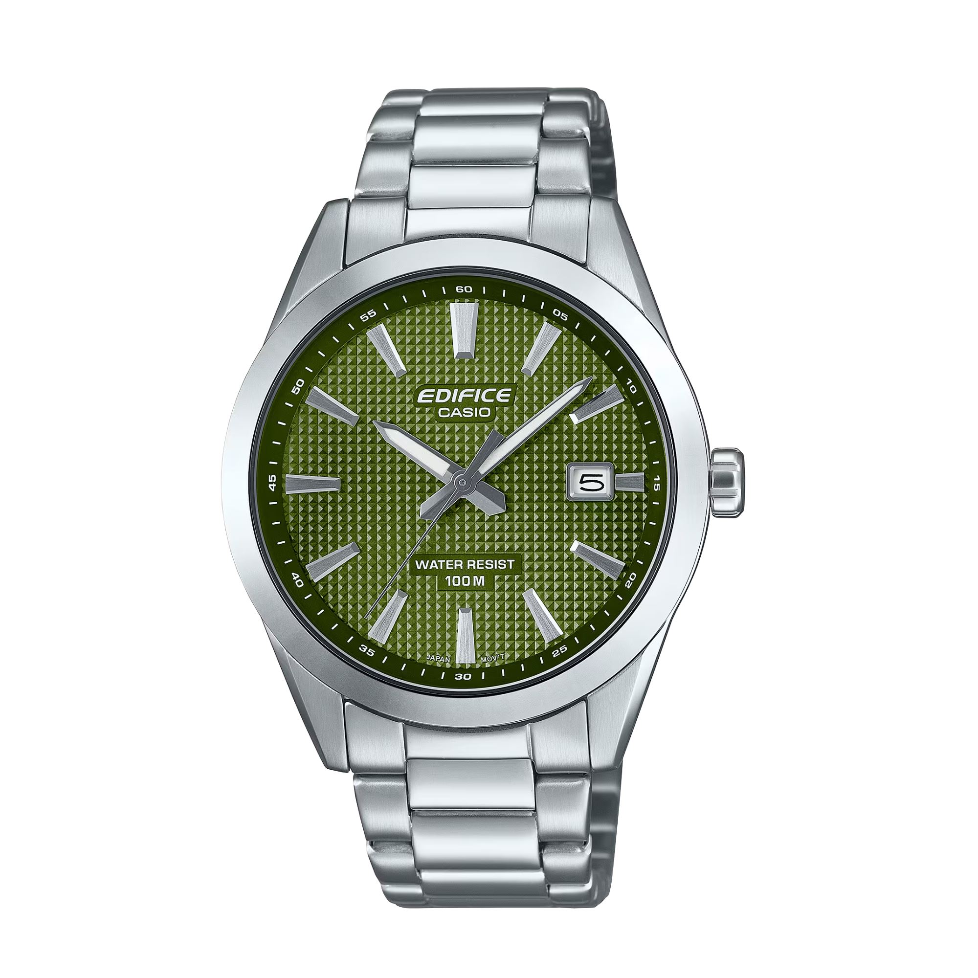 Montre acier Ø 40 mm, fond vert texturé, dateur, Casio Edifice
