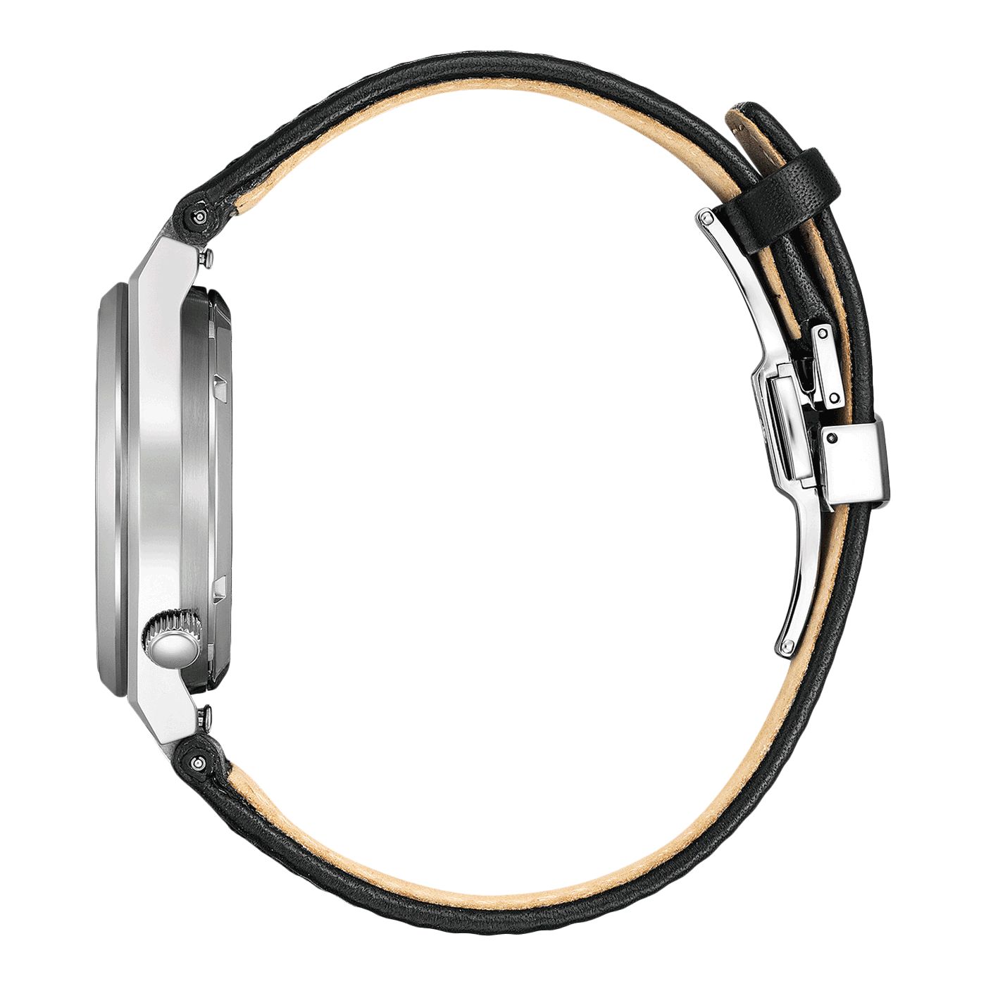 Bracelet interchangeable, cuir noir avec boucle déployante