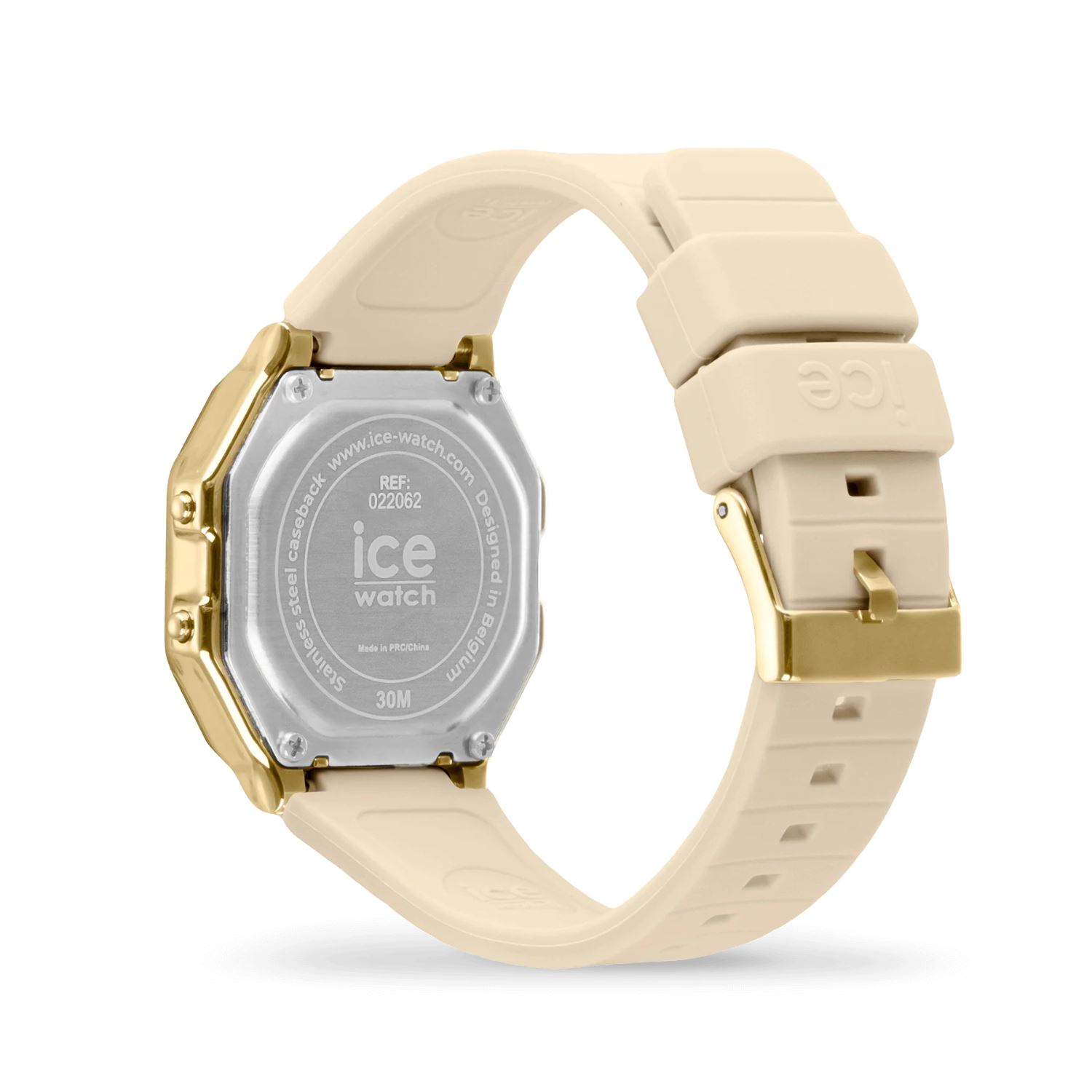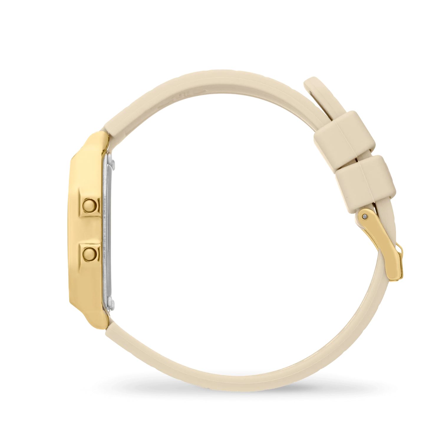 Boitier résine doré 32 mm, bracelet silicone beige, alarme, chrono, lumière, dateur