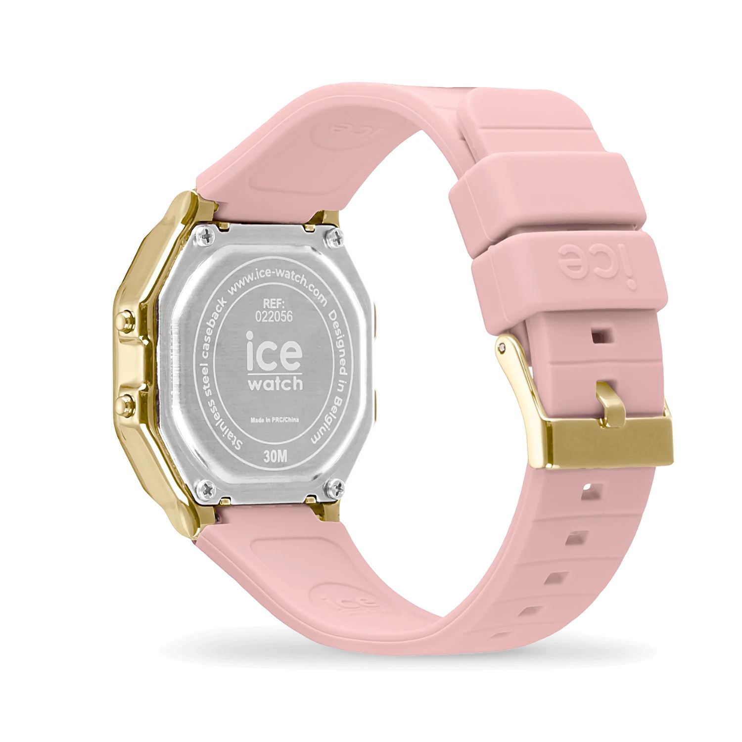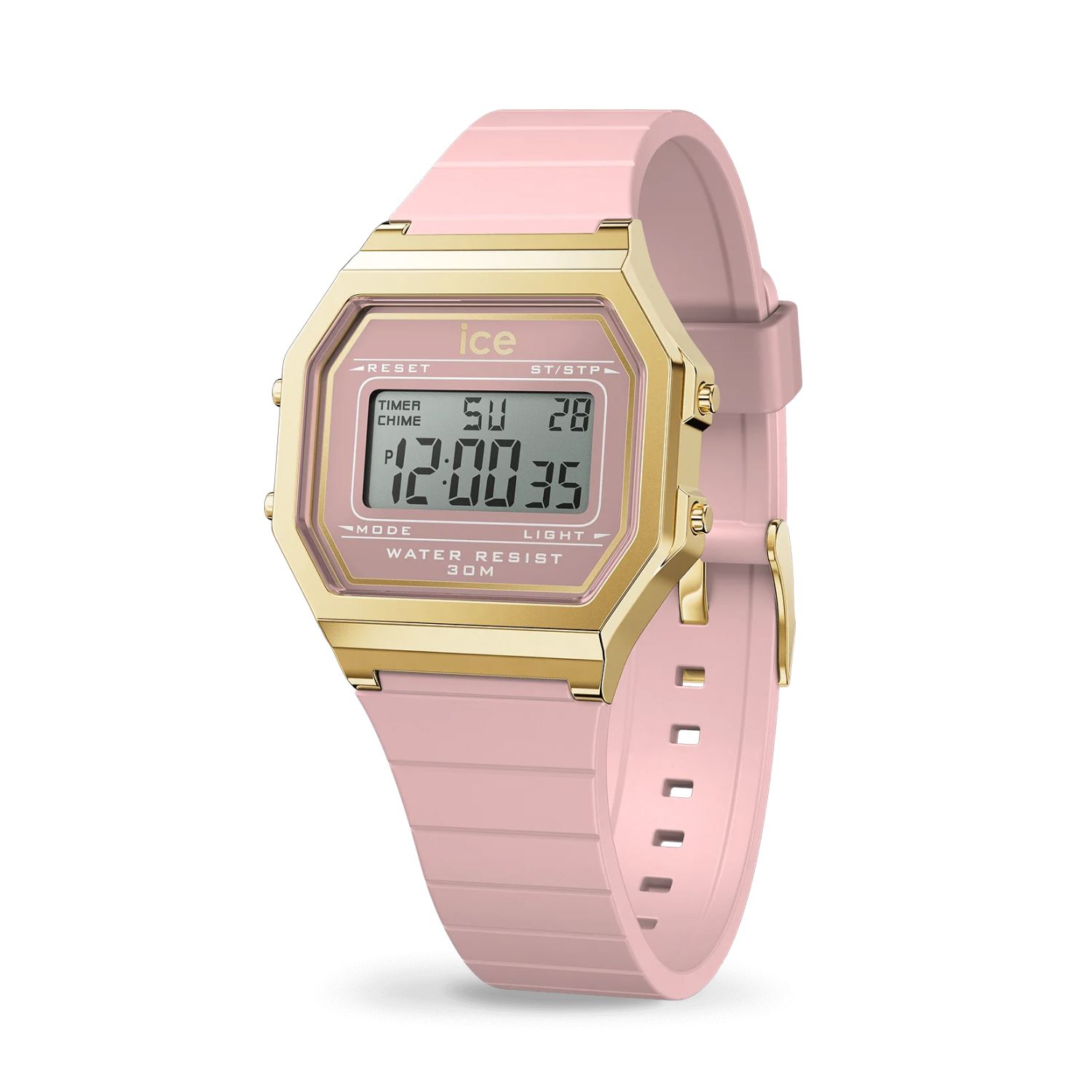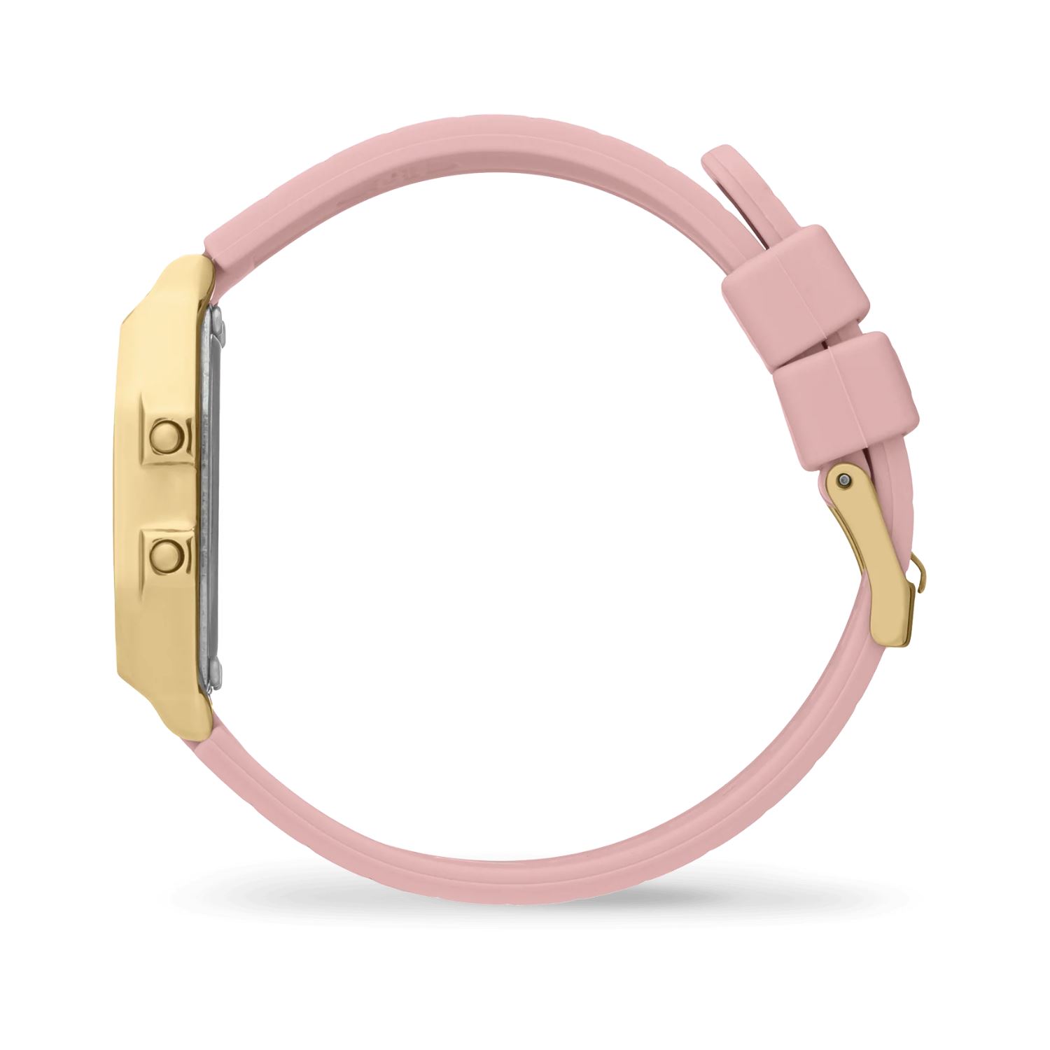 Boitier résine doré 32 mm, bracelet rose silicone, alarme, chrono, lumière, dateur