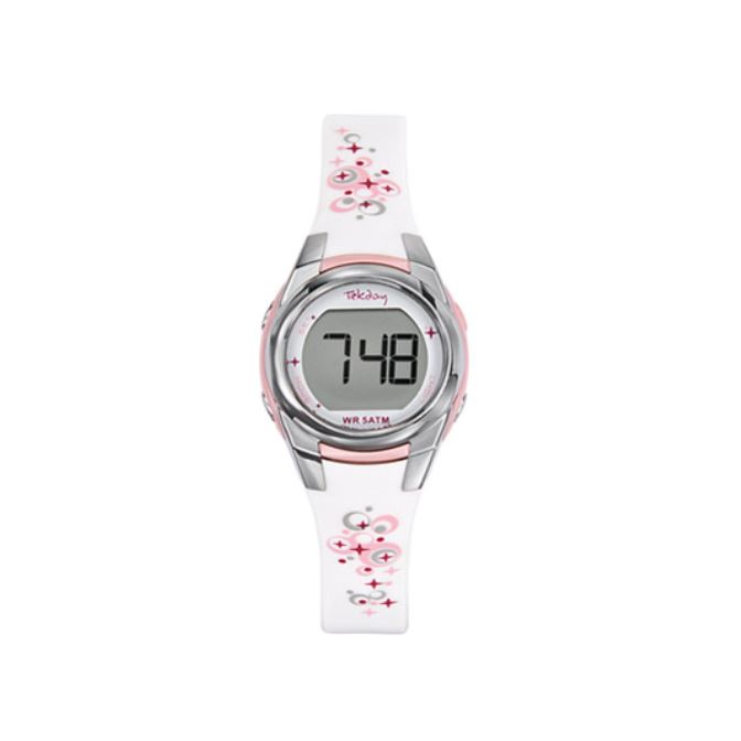 Boitier résine 28 mm, bracelet résine blanc et étoiles roses