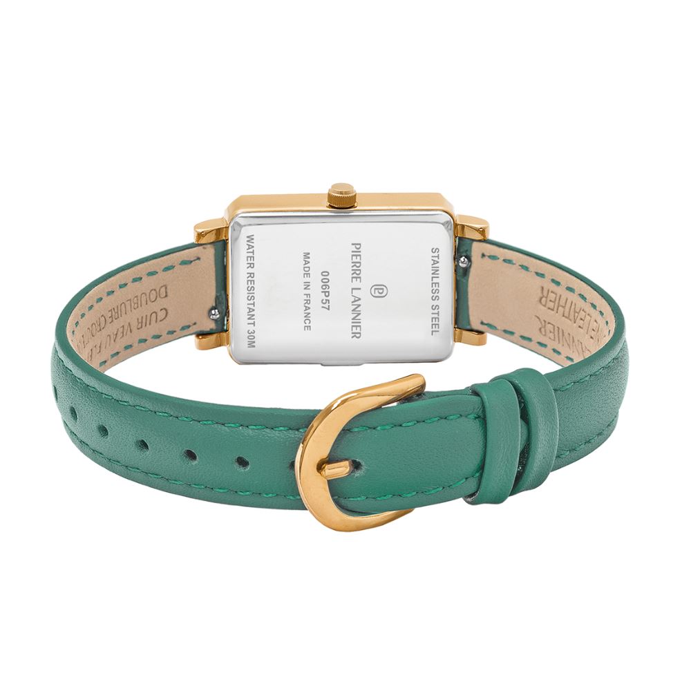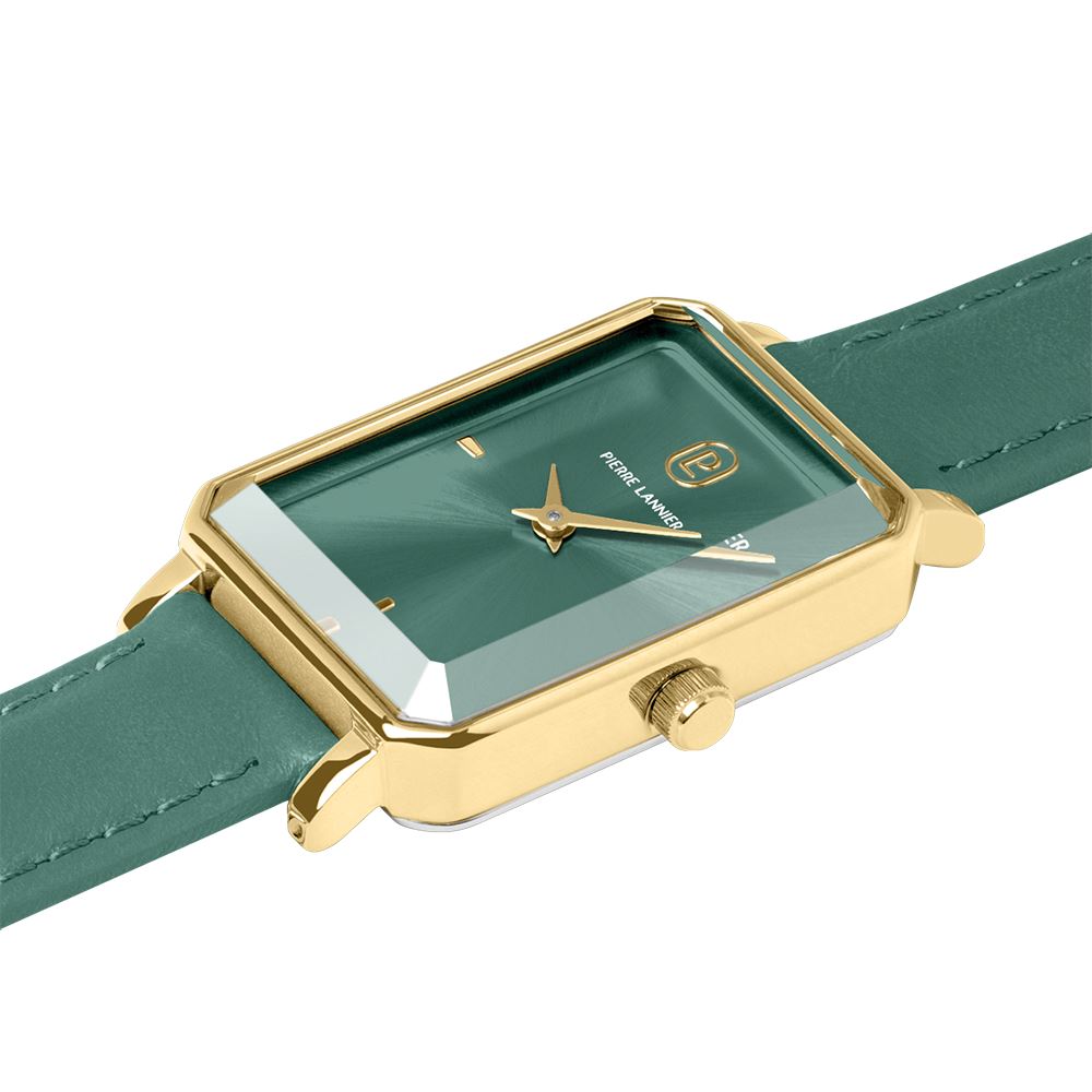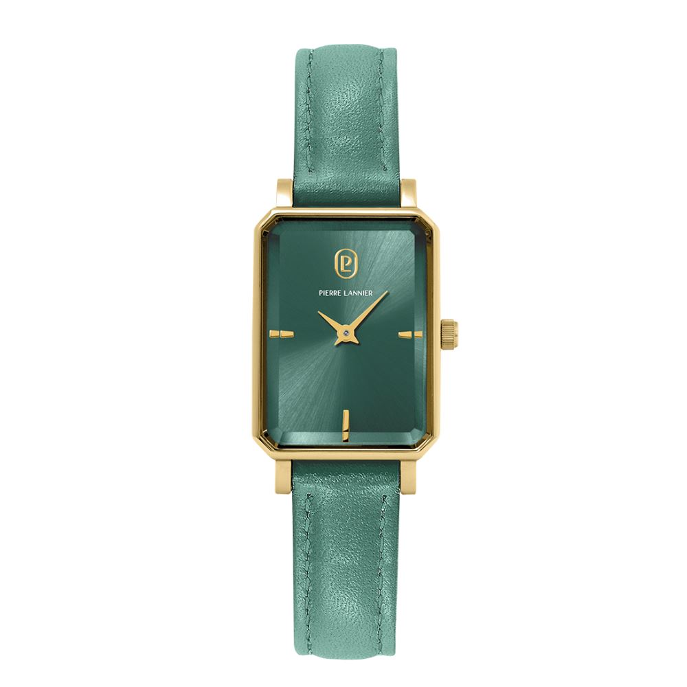 Montre femme « Ariane », acier doré 28 x 21 mm, cuir verre, Pierre Lannier