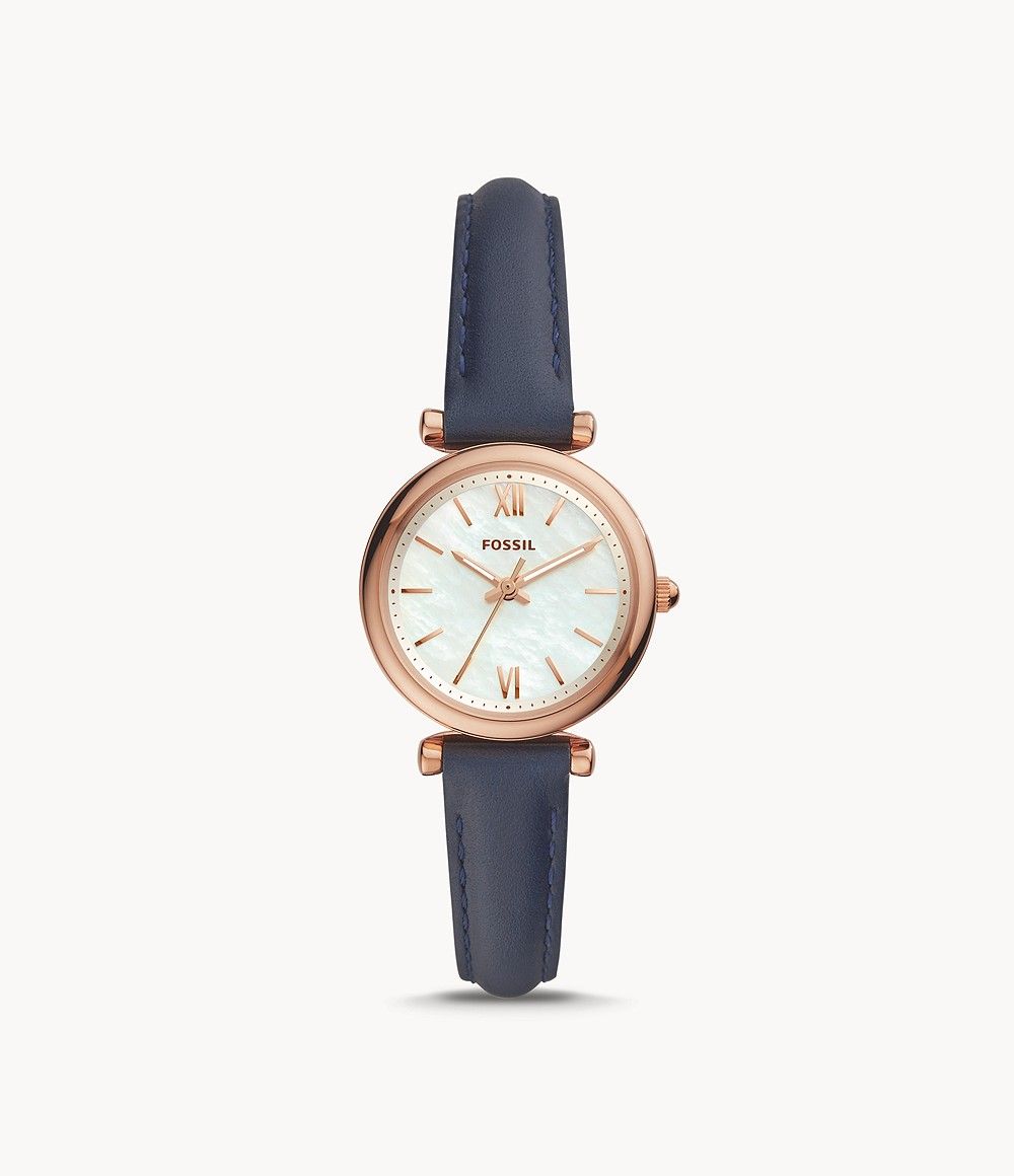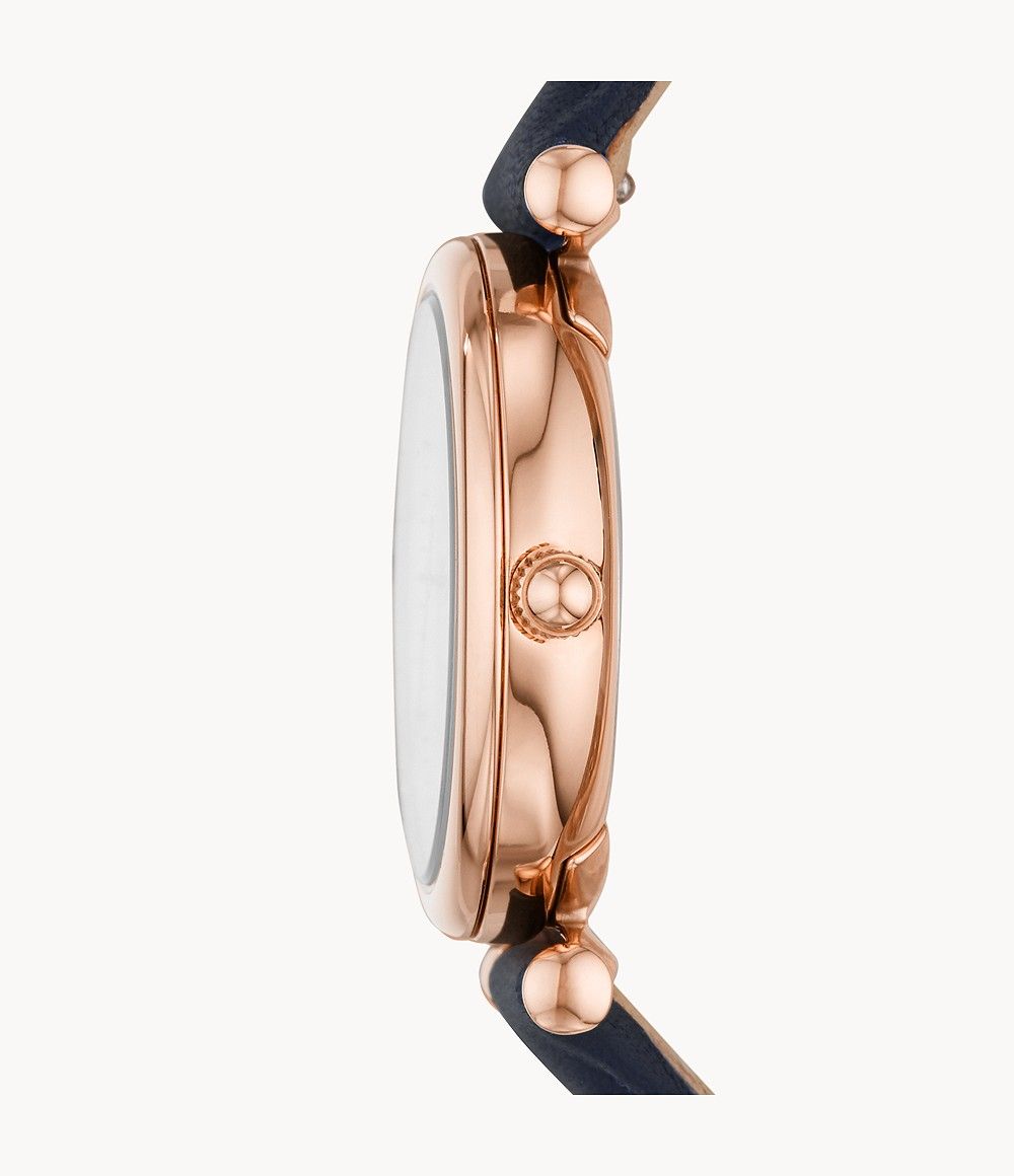 Trois aiguilles, cuir bleu marine
