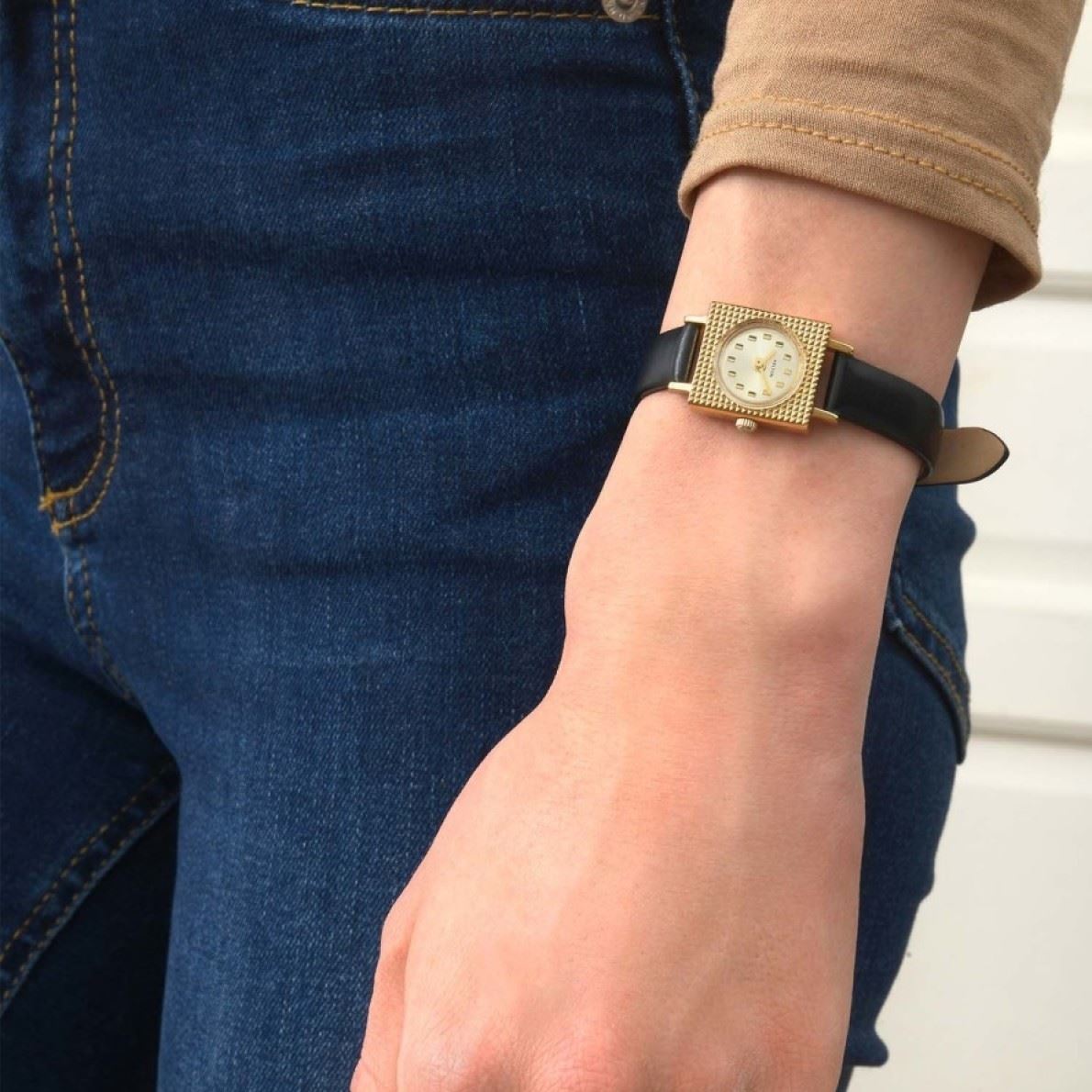 Boitier acier doré 18 x 20 mm, hauteur entrecorne 28 mm, épaisseur 7 mm