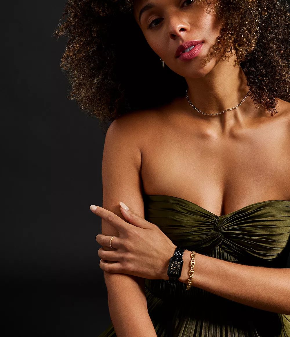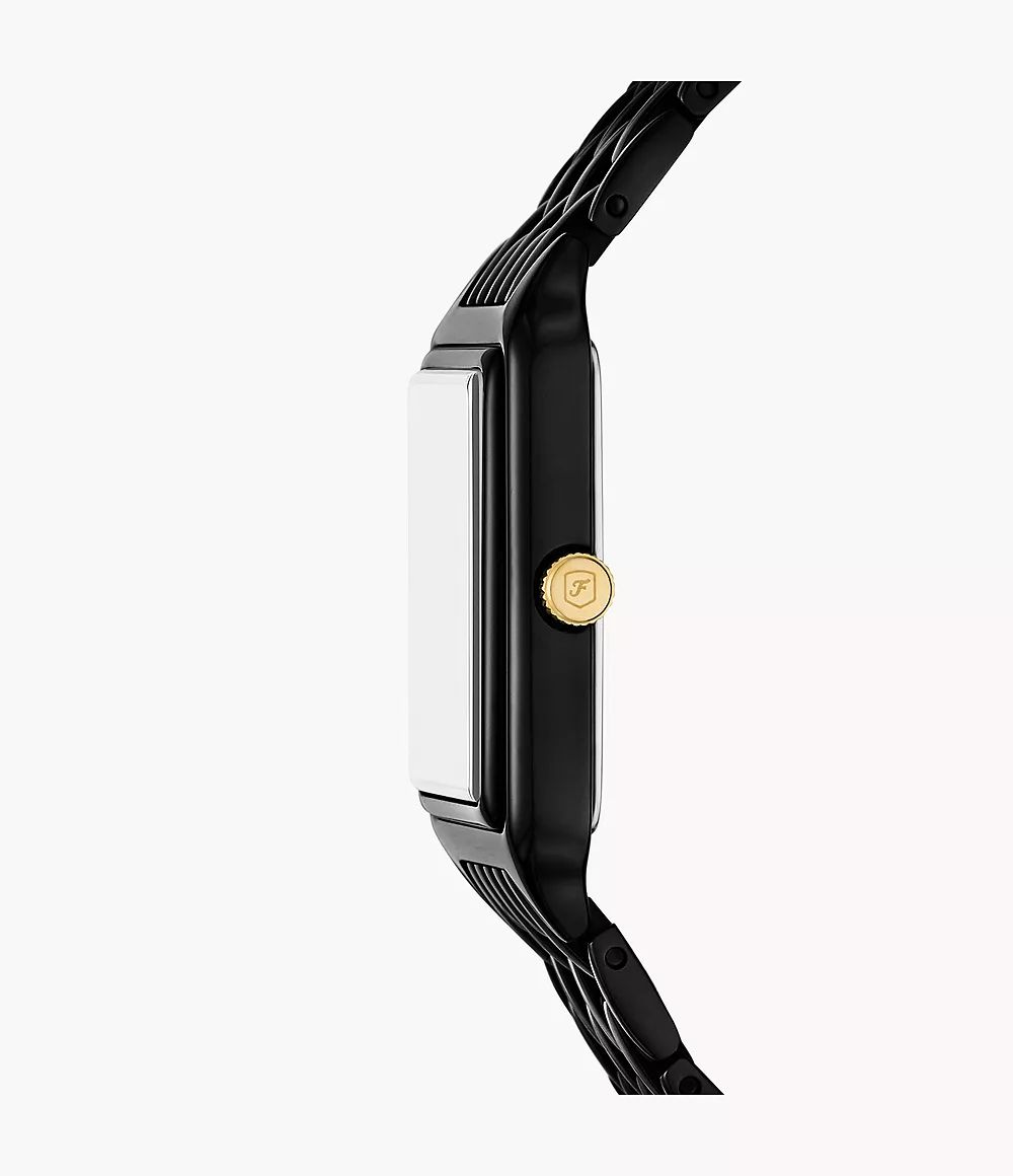 Boitier acier noir largeur 23 mm, hauteur 35 mm, 3 aiguilles et dateur