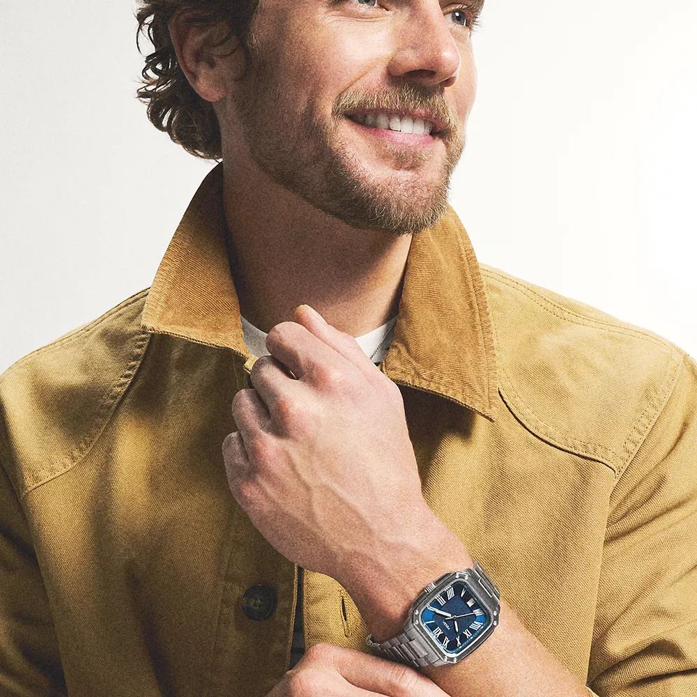 Montre homme acier 42 mm, « Crosby » bleue, Fossil