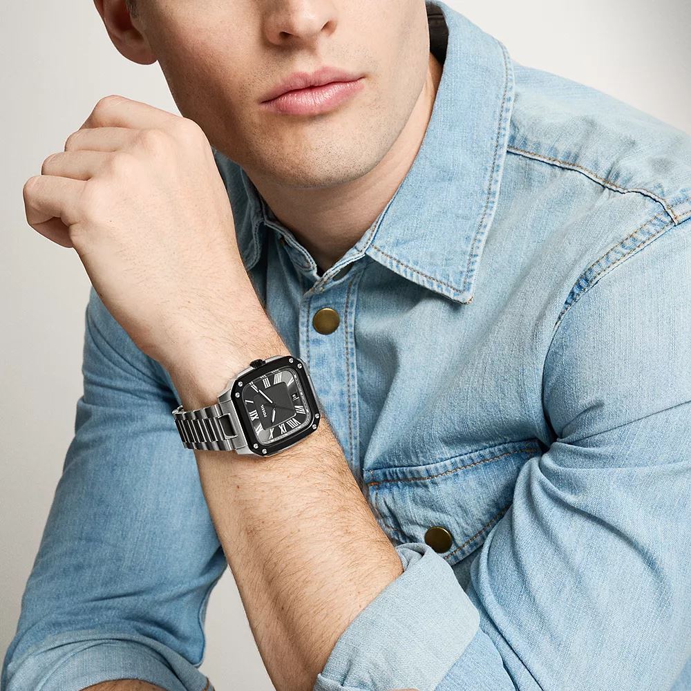 Boitier 42 mm, lunette PVD noir, cadran gris/noir