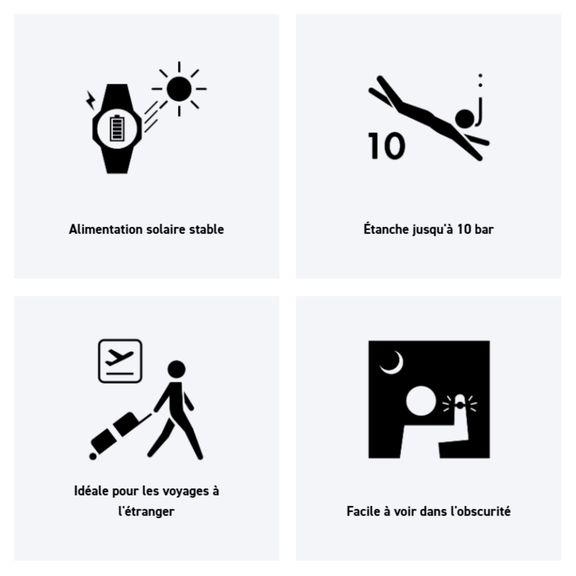 5 alarmes, Heures universelles, dateur, éclairage, étanche 10 ATM