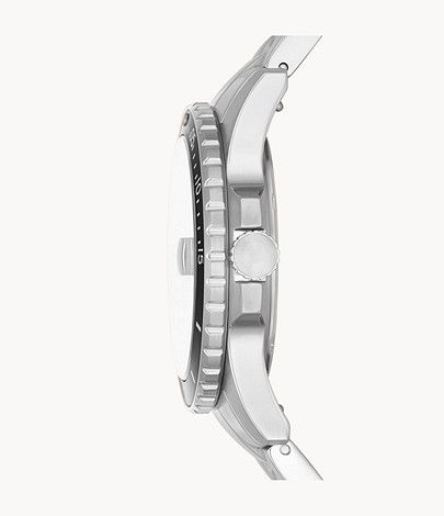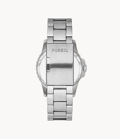 Boitier acier 42 mm, fond de cadran noir, index et aiguilles beige, boucle déployante, dateur