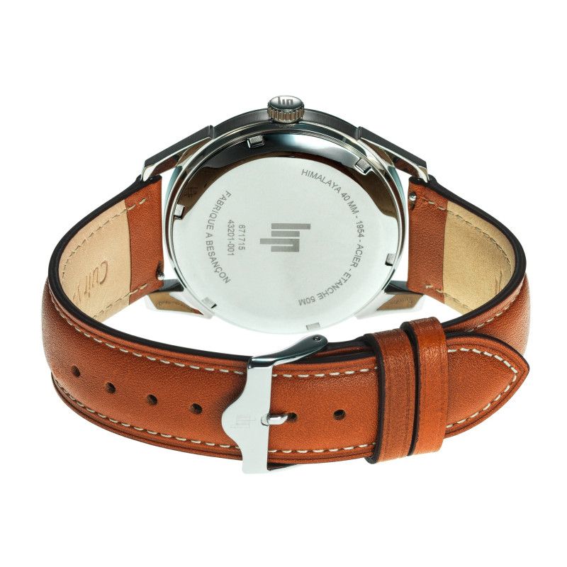 Fond de cadran vert mat métalisé, cuir camel surpiqure blanches