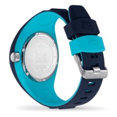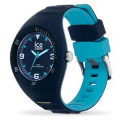 Montre Homme, bracelet silicone bleu marine intérieur turquoise, index et aiguilles turquoise et blanc, Dateur