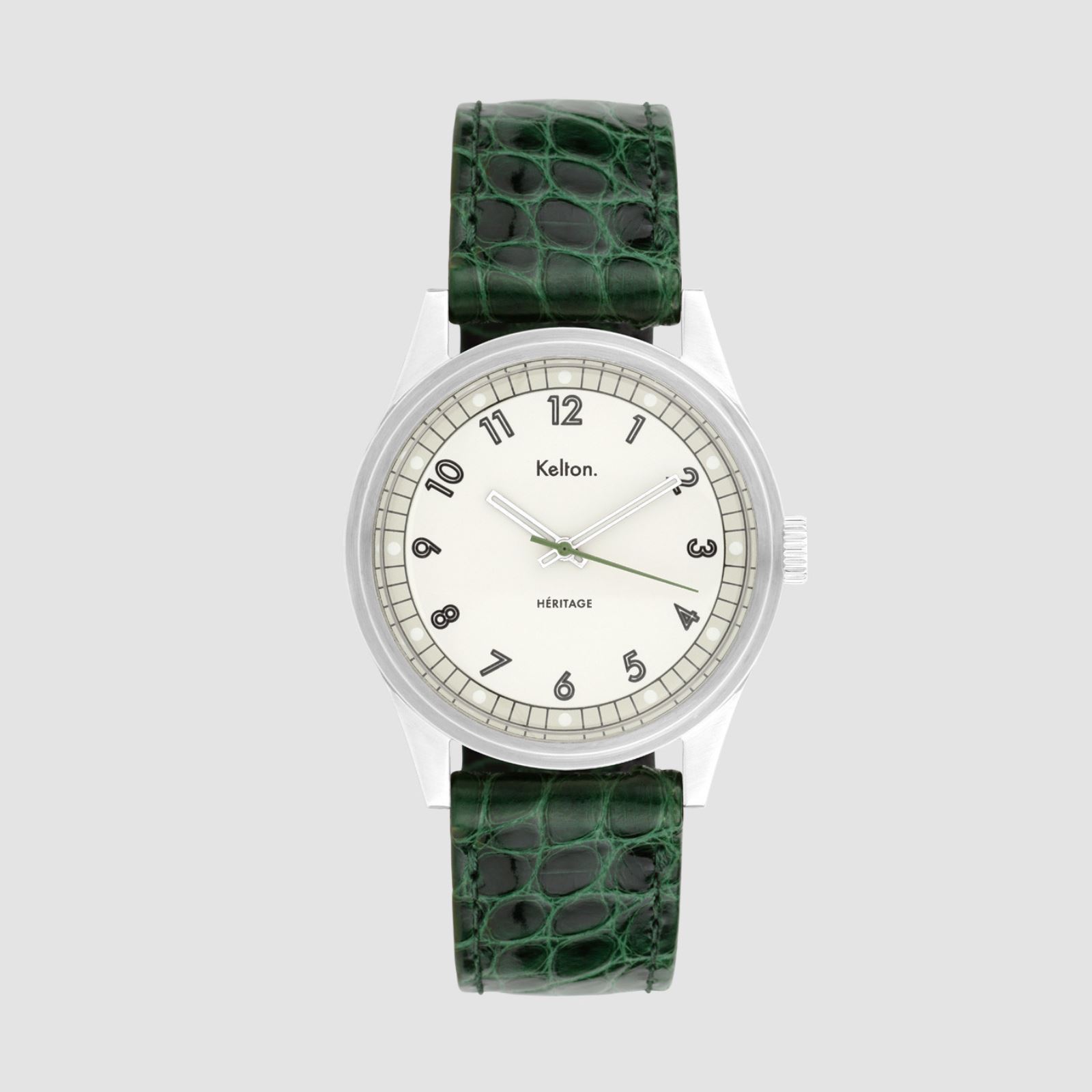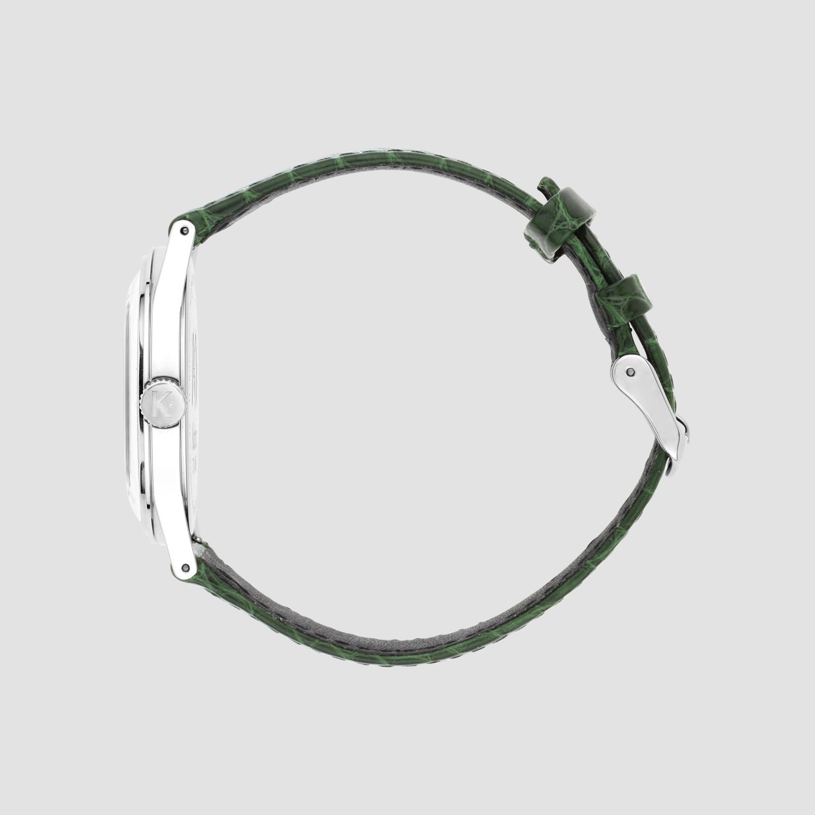 Verre acrylique, bracelet cuir peau d’alligator vert