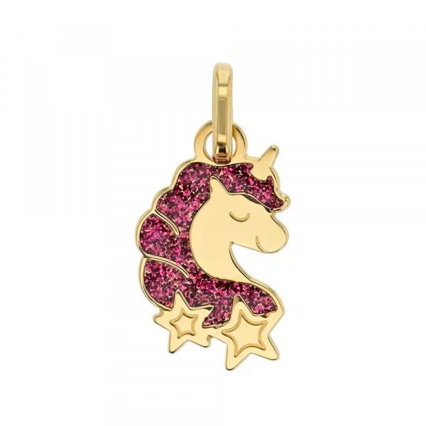 Or jaune 375/000, licorne émail pailleté rose
