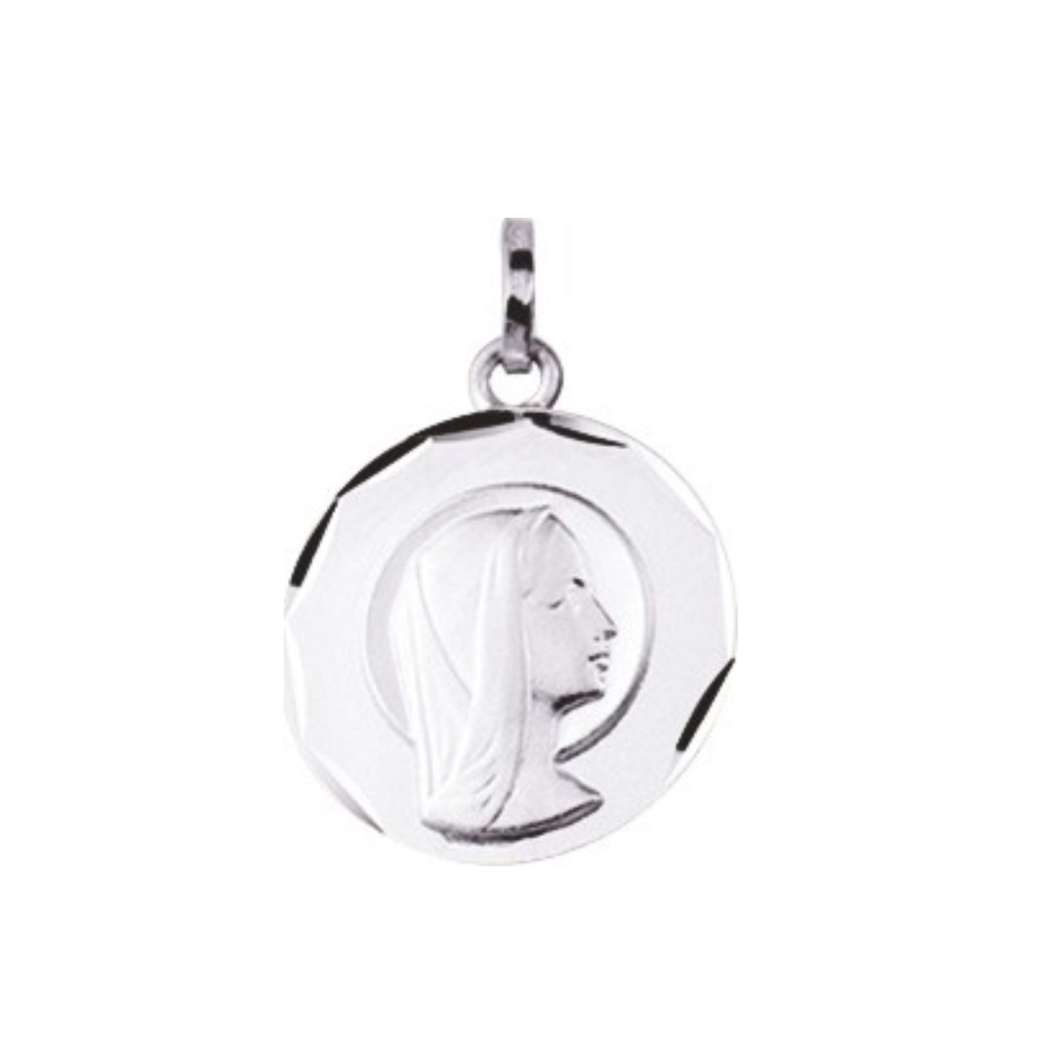 Or blanc 375/000, finition sablée et bordures cisellées. ø 15 mm