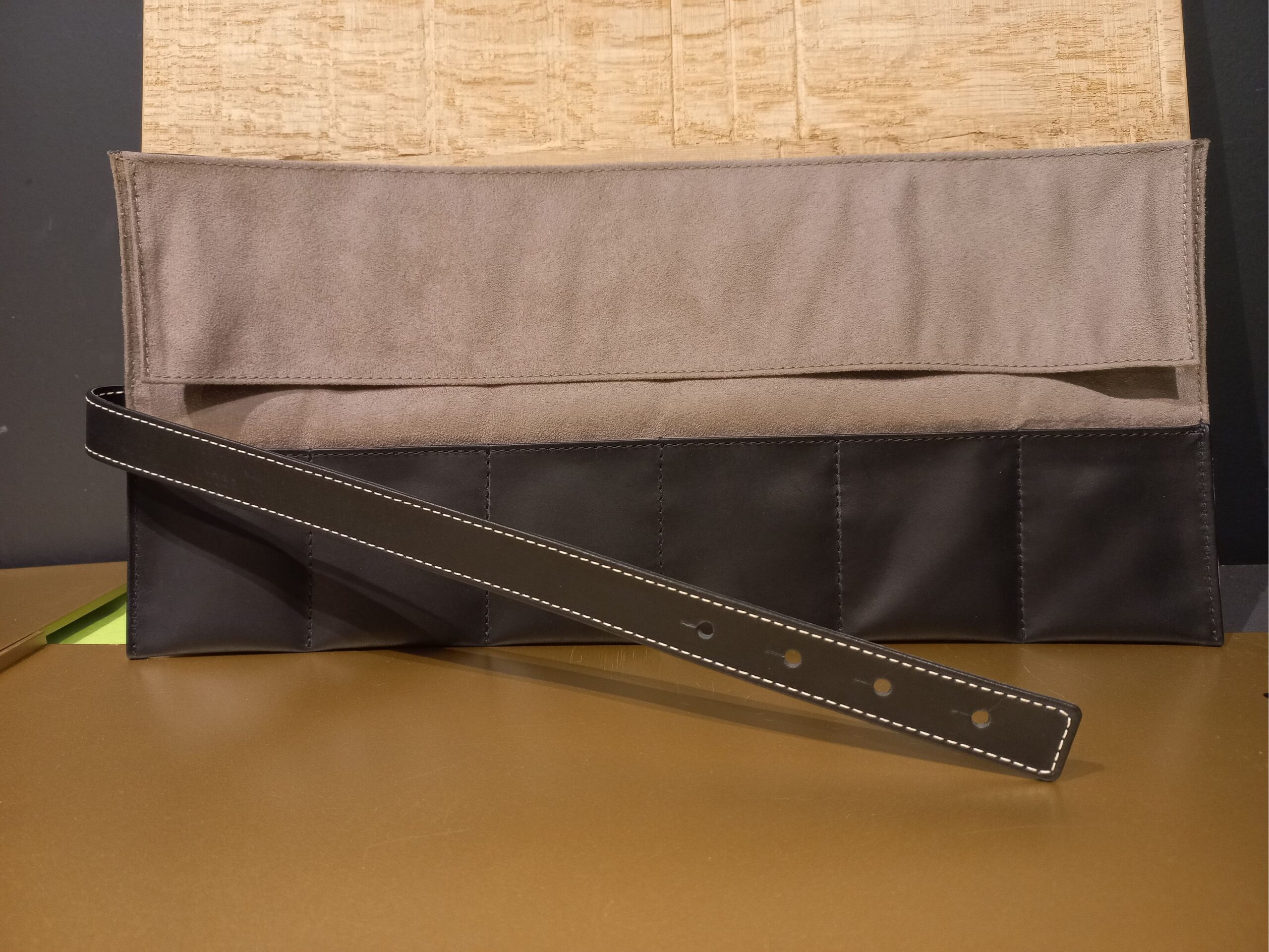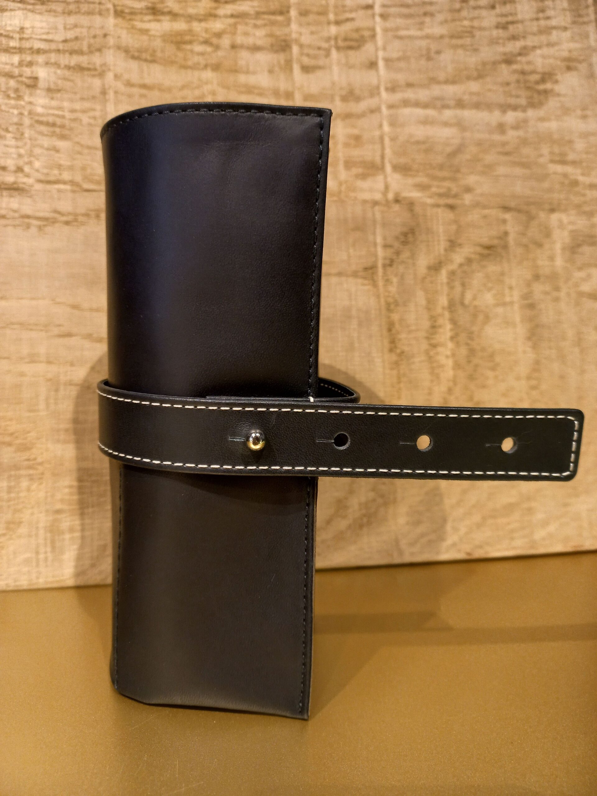 Trousse de voyage 6 montres en cuir de vachette noir. Dimensions : longueur dépliée 39 cm et largeur 18 cm